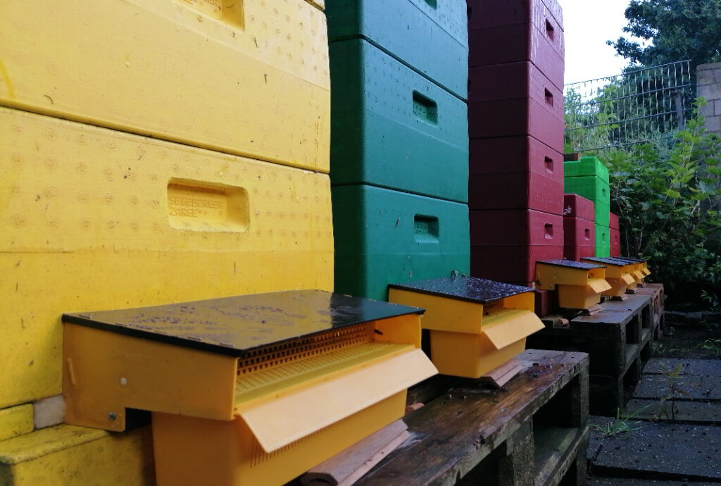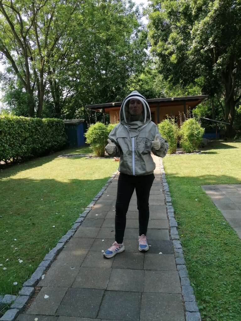 Mit dem Erwerb unserer Imker-Grundausbildung und viel Engagement haben wir Schritt für Schritt das Bienenquartier aufgebaut – einen Ort, an dem Mensch und Biene in Einklang leben. Heute betreuen wir mehrere Bienenvölker in Moers und produzieren regionalen, naturbelassenen Honig, den wir mit viel Liebe und in Handarbeit gewinnen.
